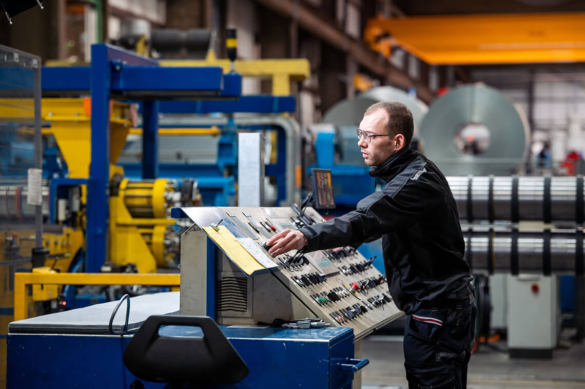 On our rounding and rolling lines, we can process the edges of the slitted strips as required or re-roll them for better flatness and less saber. It is also possible to deburr the strips in combination and to re-roll them flat.